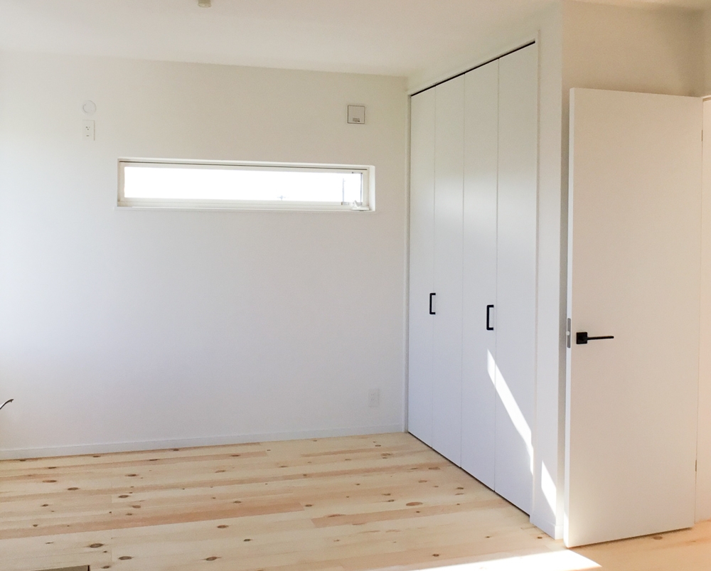 やさしい風合いのパイン床材や塗り壁と馴染む、シンプルですっきりとしたデザインを採用。ホワイト色のドアは、様々なインテリアに合わせていただけます。リビングドアには、ガラス入りドアを採用しています。