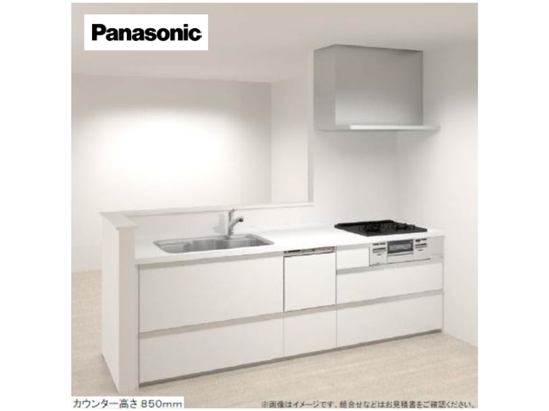 ■扉カラー:ビューティホワイト / ステンレスワークトップ・シンク/ 3口ガスコンロ / 食器洗い乾燥機 他