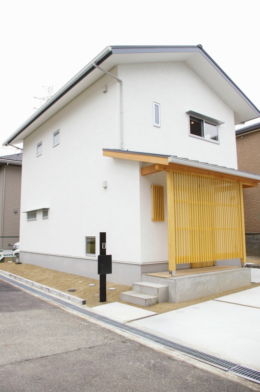 池田市Y様邸 竣工 平成31年1月 延床面積 84.25㎡(25.48坪) 外壁 / 屋根 カルクウォール(スイス漆喰)塗り・一部ウッドサイディング(カラ松) / ガルバリウム鋼板 ……